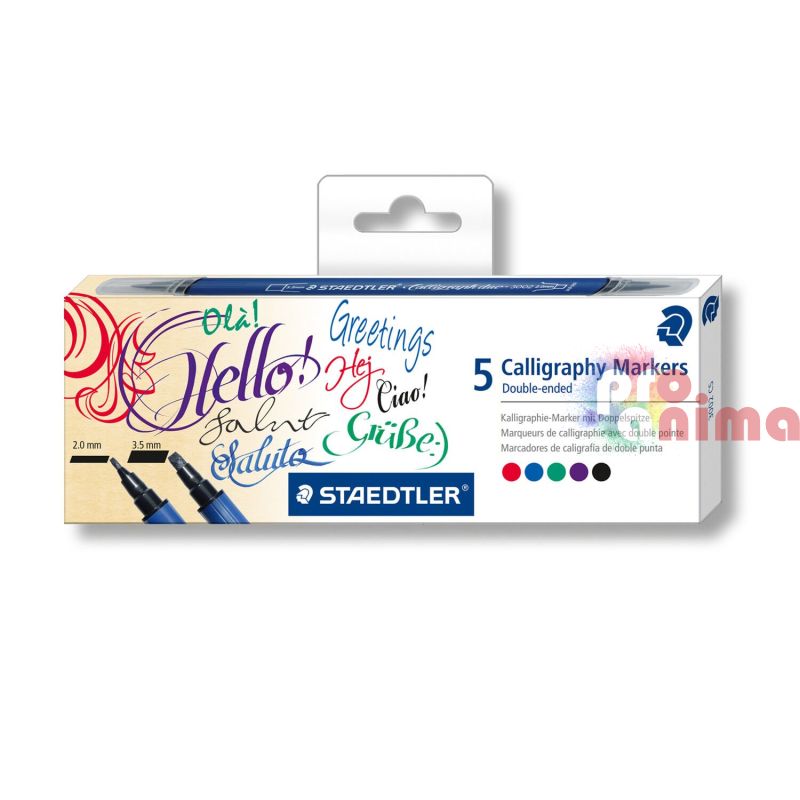 Калиграфски маркери Staedtler, 5 цвята, двувърхи