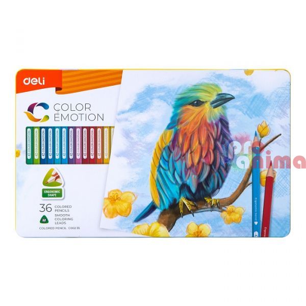Цветни моливи Deli Color Emotion, 36 цвята, в метална кутия