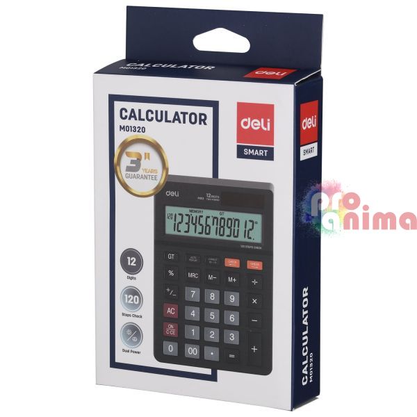 Smart EM01320 на Deli е настолен калкулатор с голям 12 разряден дисплей и двойно захранване.