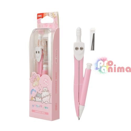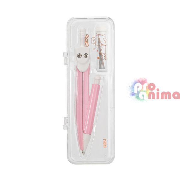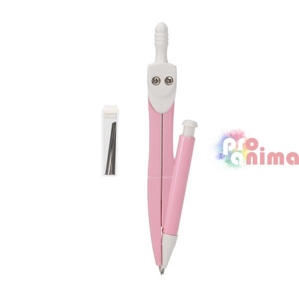 Детски метален пергел Deli MiYou, с автоматичен молив и графити, розов