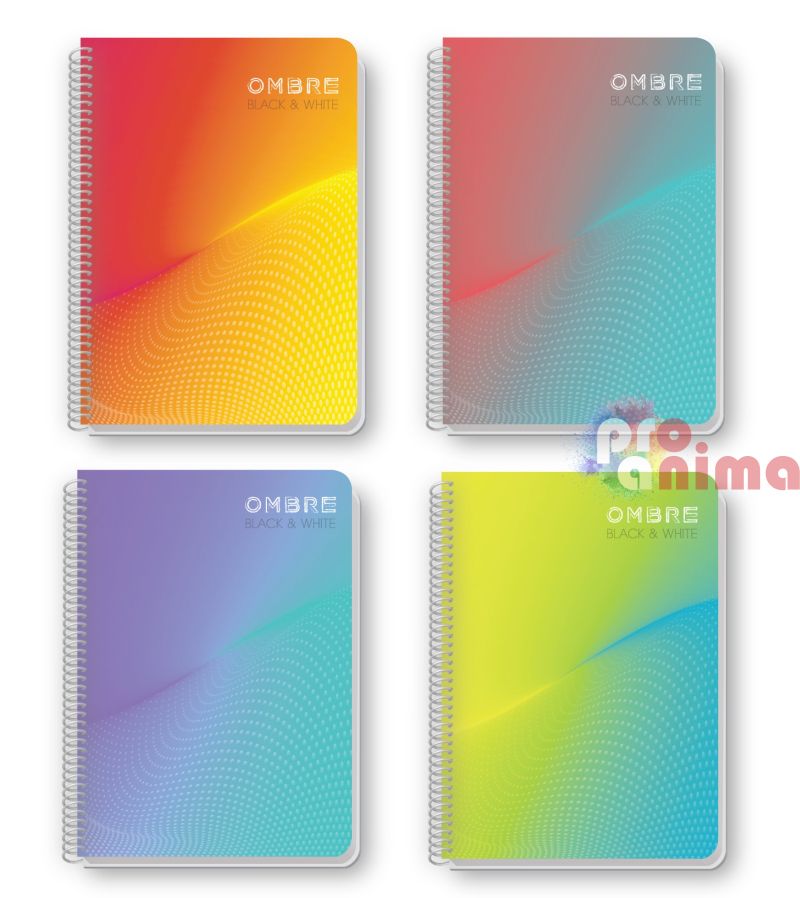 Тетрадка Black&White, среден формат B5, 105 листа, редове, спирала, Ombre