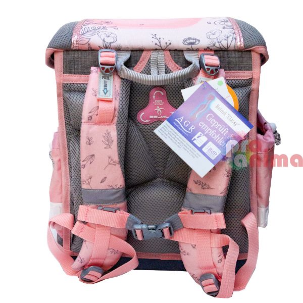 - няколко дръжки - гумирана удобна дръжка за носене на ръка (удобна за родители) и друга за закачане на раницата в час;