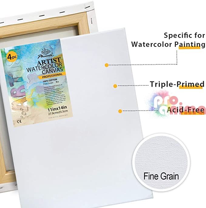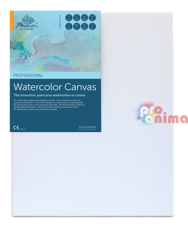 Платно за рисуване с акварел Phoenix Watercolor. Иновативните акварелни платна от тази серия са подходящи за професионална употреба. Поради способността на платното да не абсорбира боята и водата бързо, благодарение на положения гесо грунд, корекцията на детайли от вашата картина е изключително лесна. Ако в хода на рисуване промените идеята си, лесно бихте могли да премахнете боята от платното и дори да я измиете.