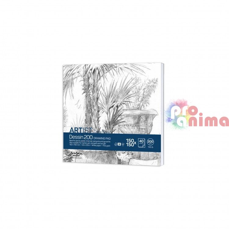 Скицник квадрат Drasca Boykinov Drawing Pad, 15 x 15 cm, 40 л., 200 g/m2, лепен