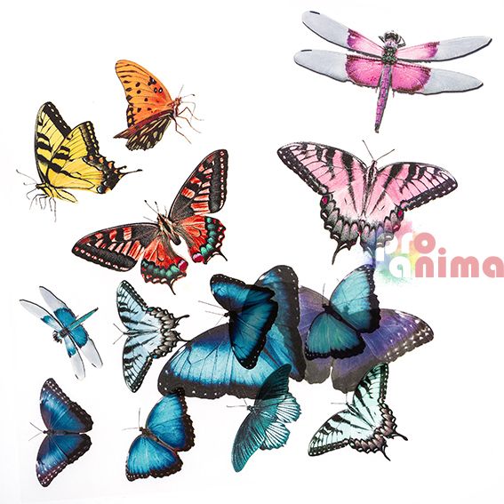 Прозрачни стикери от PVC, матирани, Пеперуди, 15 бр.