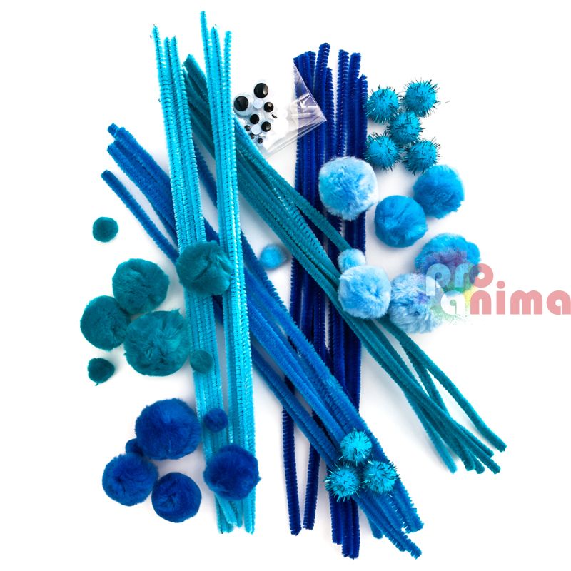 - пухени телчета с различни дължини и в различни нюанси на синьото;
