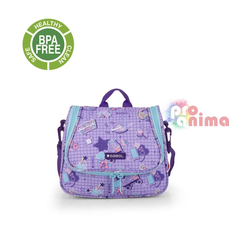 Термо чантата за храна за училище Gabol Funny е изработена от материал, несъдържащ PVC.