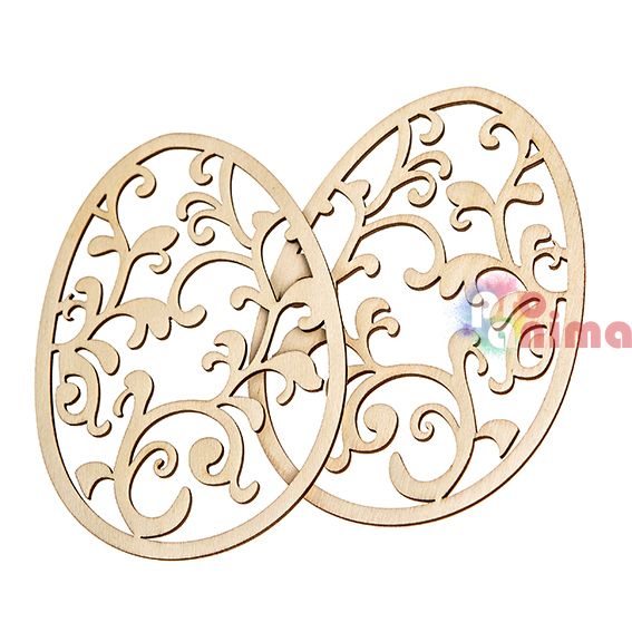 - в опаковка: 2 бр. дървени яйца с ажурни, декоративни, растителни мотиви;