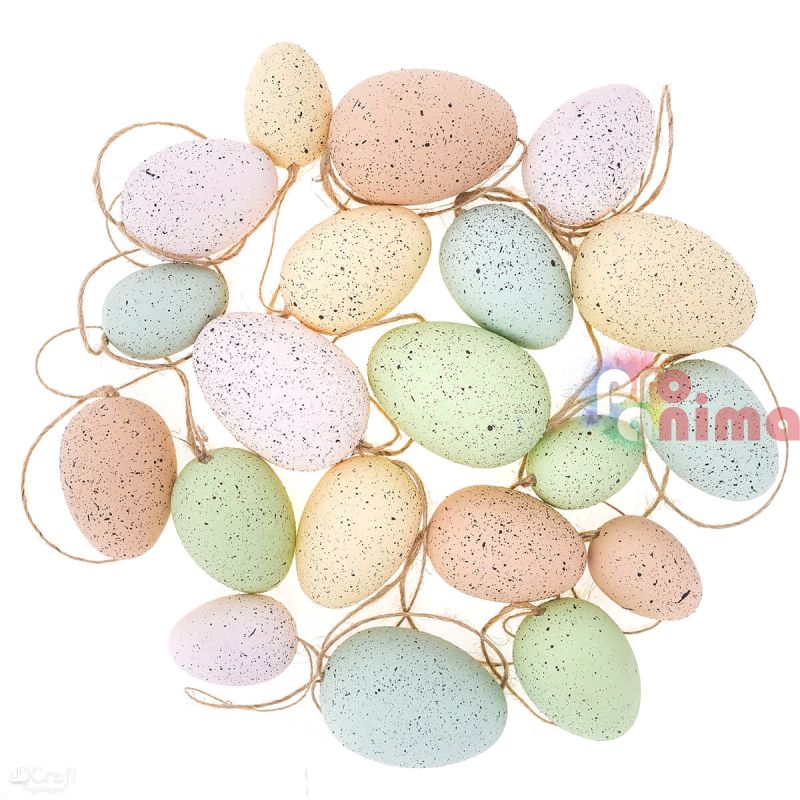 Декоративни яйца за закачане DP Craft, 20 бр. в мрежеста торбичка, пастел тъмни петна