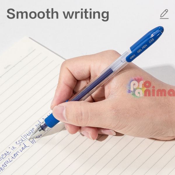 Химикалка Deli EG150-BL с гелово мастилопрозрачно тяло и грип зона за удобно захващане.