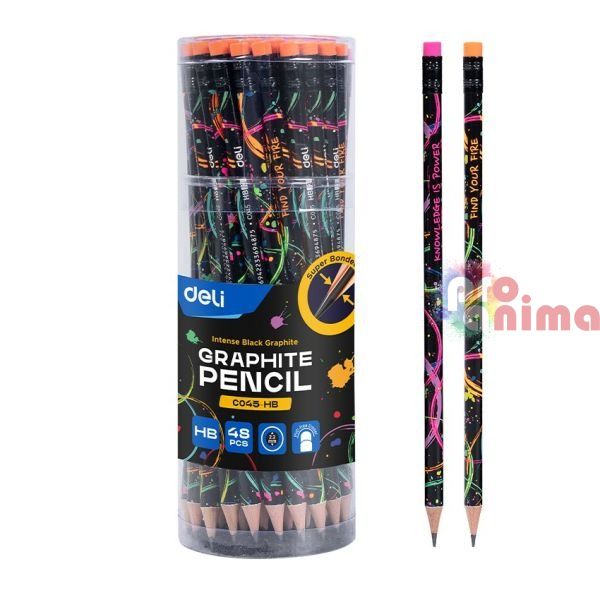 Чернографитен молив с гума Deli EC045 HB – перфектният инструмент за писане и рисуване, който съчетава удобство, качество и стил. Този молив е идеален за ученици, студенти, художници и всички, които ценят гладкото писане и прецизното изтриване.