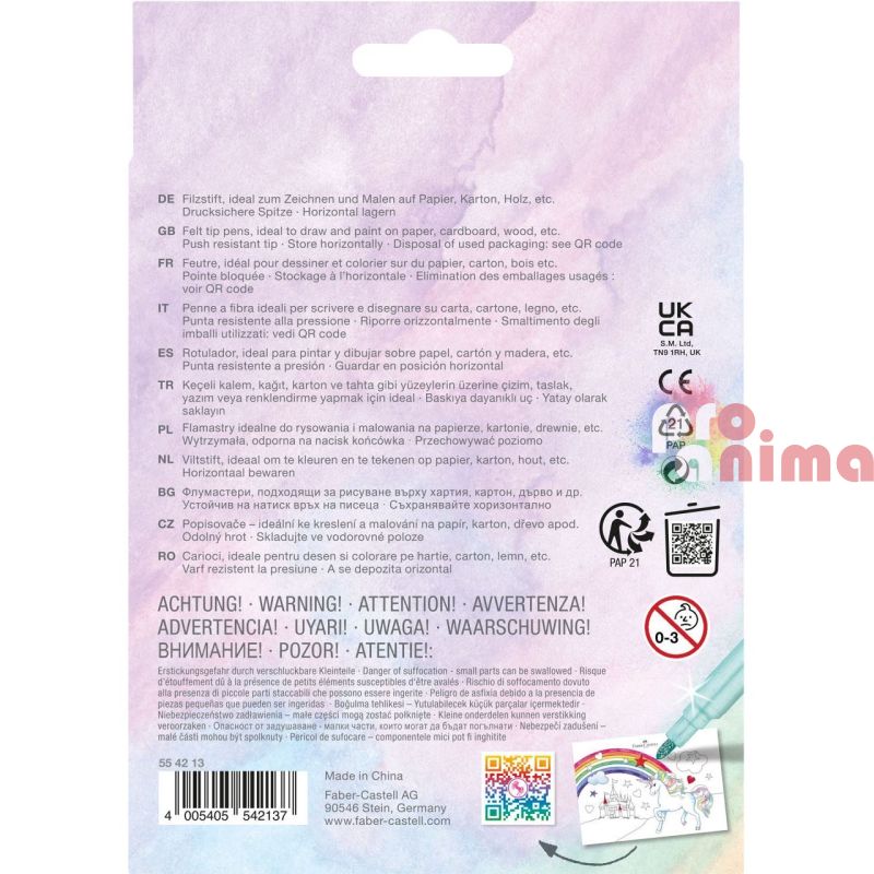 Комплект флумастери Faber-Castell Еднорог, подходящи за рисуване и оцветяване.