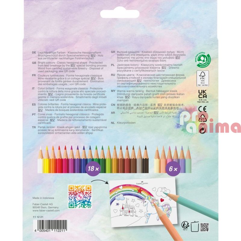 Цветни моливи Faber-Castell Еднорог, 18+6 цвята и стикери