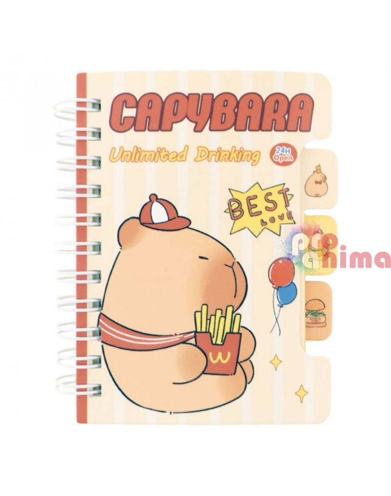 Бележник Капибара, 80 листа, спирала, с 3 разделителя, 8 x 10.5 cm