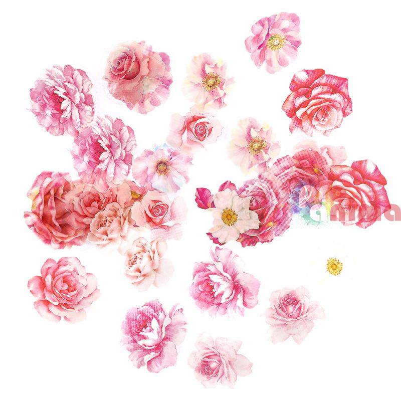 Начало Хоби и креатив Материали за декорация Стикери Стикери от прозрачно PET фолио, цветя, 30 бр., розови