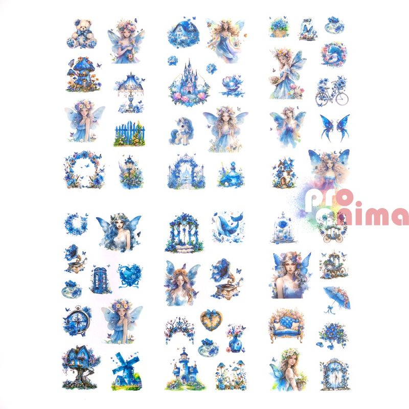 Стикери от прозрачно PET фолио, Феи, 6 листа, син звезден прах