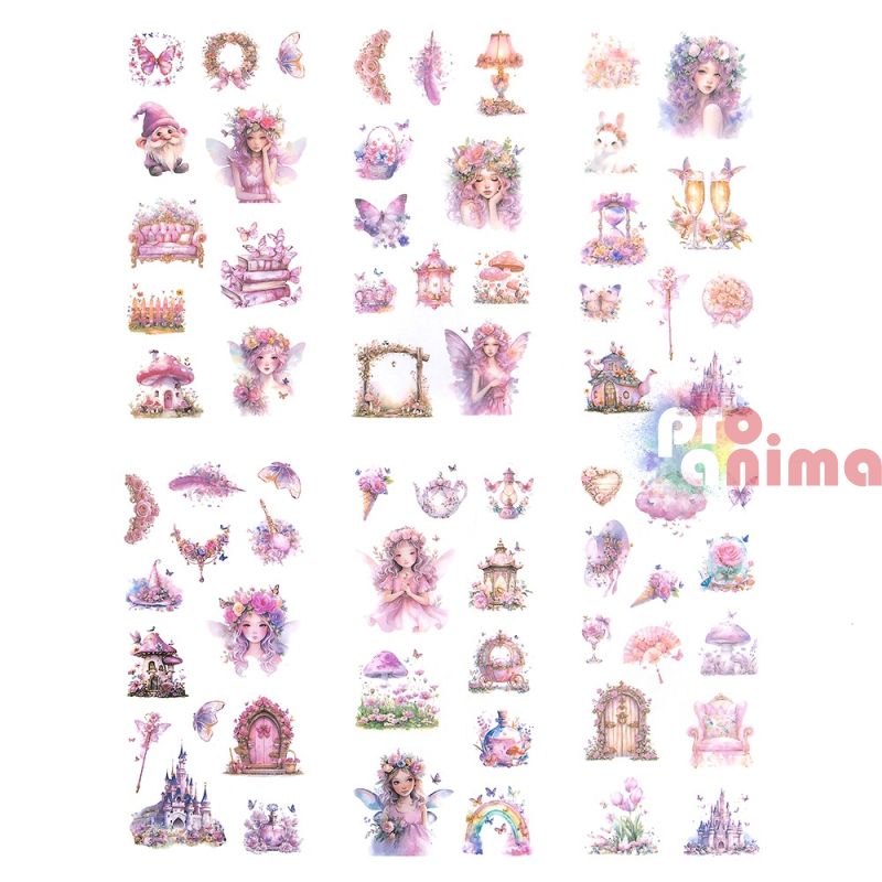 Стикери от прозрачно PET фолио, Феи, 6 листа, кристално розови
