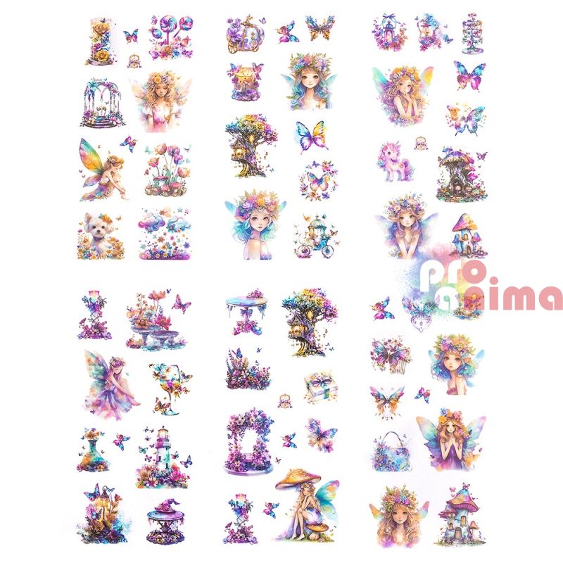 Стикери от прозрачно PET фолио, Феи, 6 листа, дъга