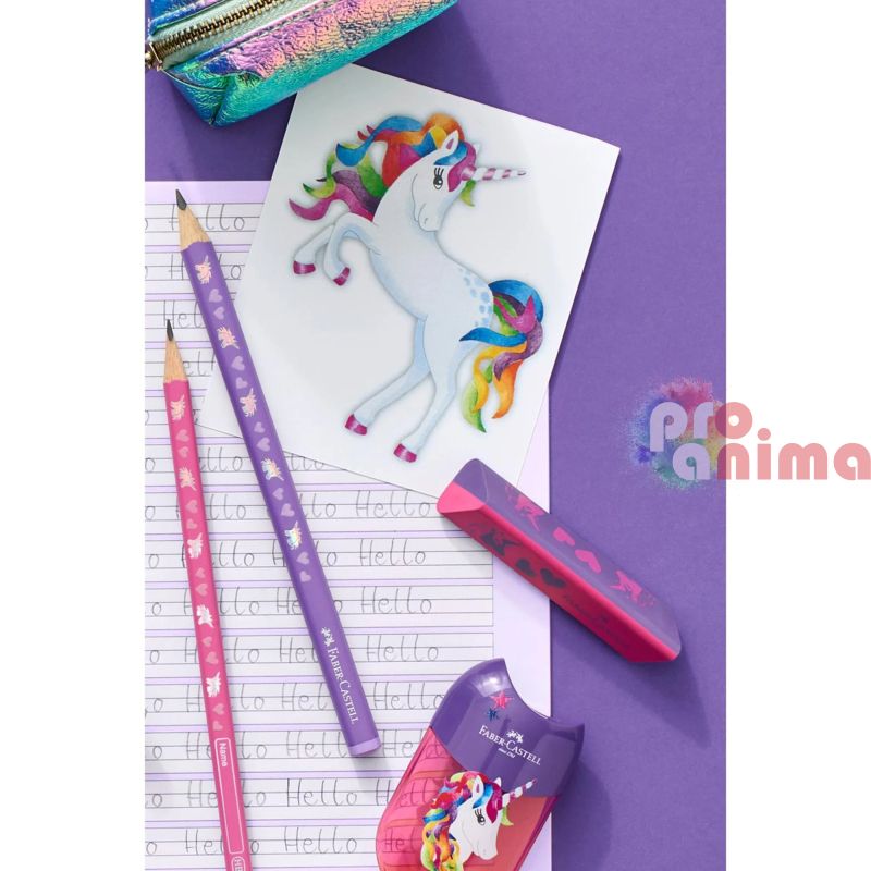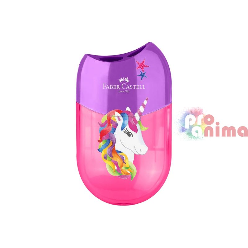 Висококачествена двойна острилка Faber-Castell за тънък и дебел молив, с атрактивен дизайн с еднорог.