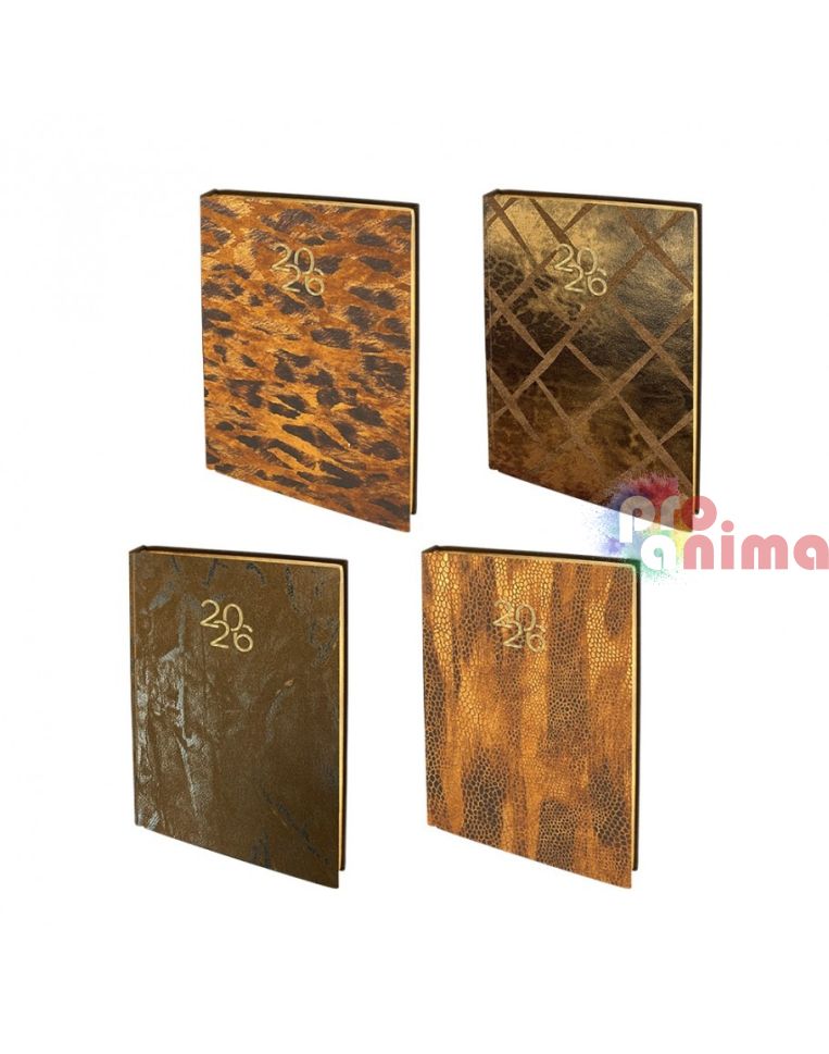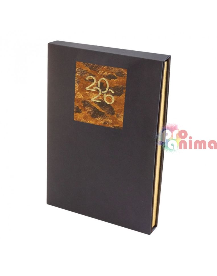 Бележник с дати 2026, 14 х 20 cm, твърда корица кафяв набук, златна порезка, 168 л., в кутия