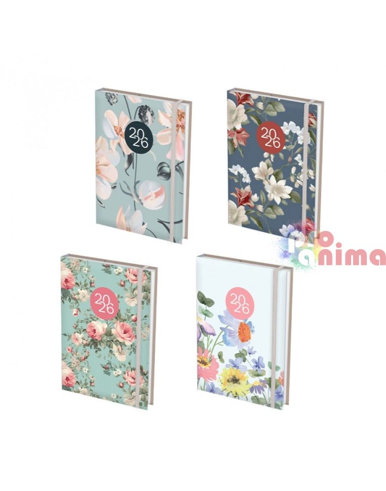 Бележник с дати 2026, 14 х 20 cm, Flowers, 168 л., с ластик