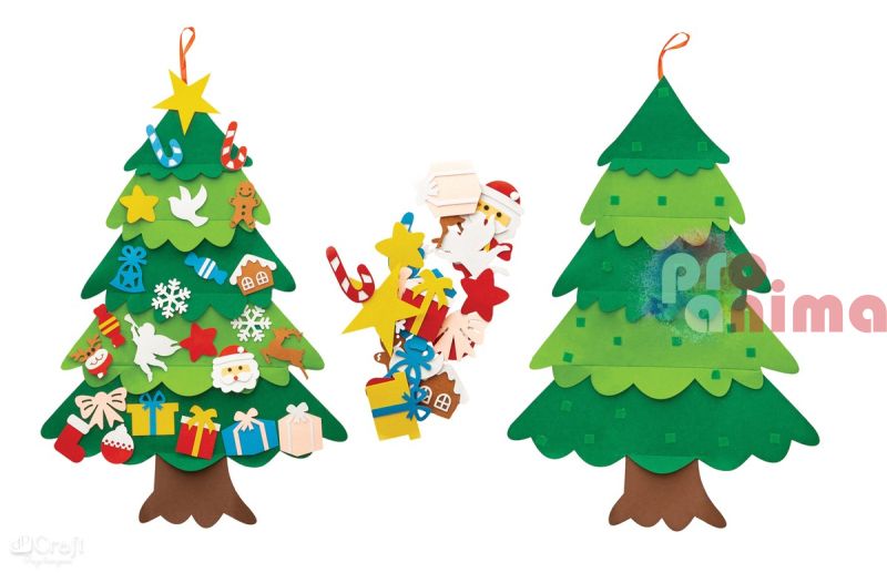 - Елхата от филц се предлага с 25 бр. подвижни фигурки с коледни мотиви (топки, ангелчета, звездички, елени, захарни бастунчета и др.);