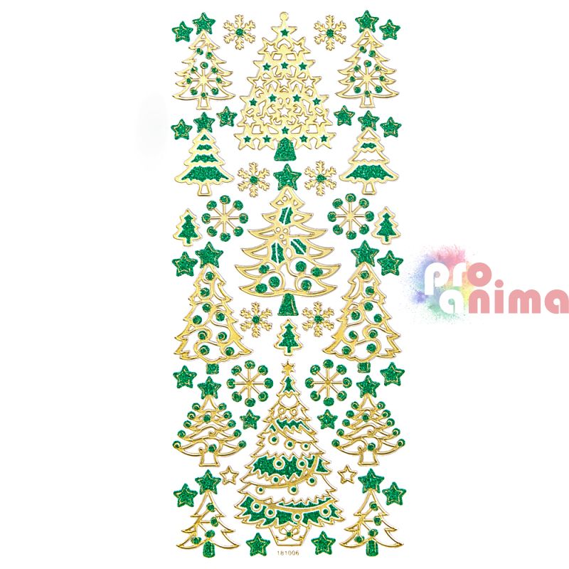 Стикери, глитер елхи, златно и зелено, 44 бр.