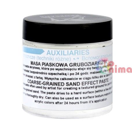 Структурната едрозърнеста паста на Renesans представлява кремообразна гъста акрилна паста за релеф. Препоръчва се за разлини техники за декоративно боядисване, като най-често се използва за създаване на релеф с ефект на едрозърнест бял пясък. Възможно е да се оцвети предварително или да се рисува върху нея след нанасяне (в този случай е необходимо тя да изсъхне напълно).