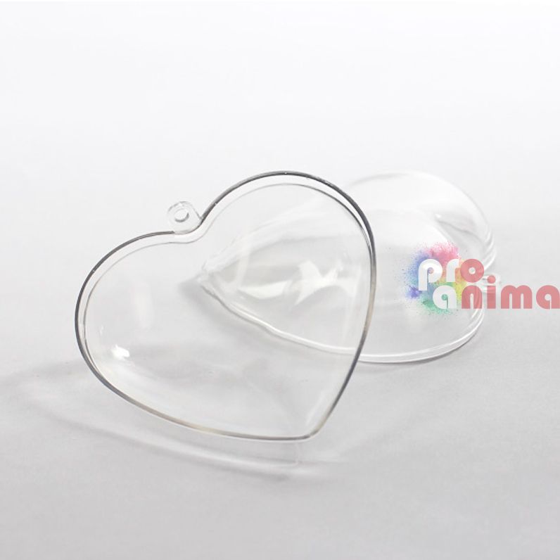 Прозрачно пластмасово сърце за декориране, състоящо се от две части. Подходящо за различни видове дакорация, както от вътрешната, така и от външната страна. Чудесен контейнер за подарък, в който можете да сложите любими неща: бонбони, снимка допълнена с красиви декоративни елементи, перли, брокат и послание и др. (дори бижу). Бъдете креативни.