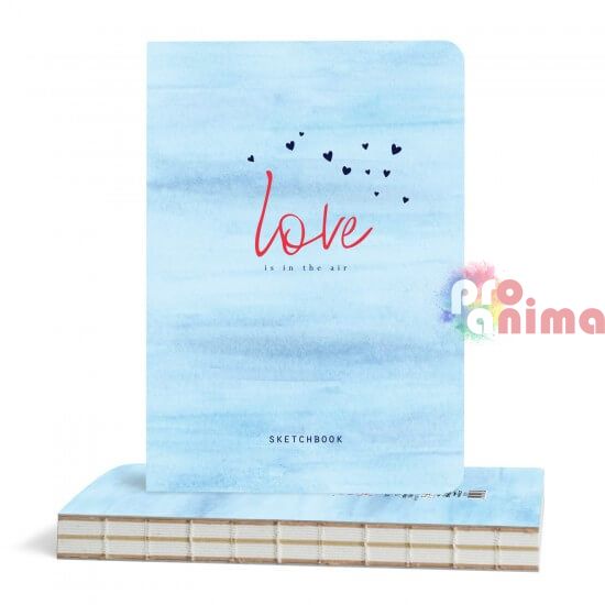 Скицникът с твърда подвързия от Love is in the air е подходящ за рисуване с графит, въглен, креда, туш, тънкописци, маркери, моливи и пастели. Съдържа 96 листа (16 листа крафт хартия и 96 листа хартия за скици с леко кремав цвят, обработена без киселина). Скицникът е съставен от 14 тетрадки, кито са подшити помежду си за по-голяма здравина. Страничният ръб е с открита груба визия, а комбинацията от бяла и крафт хартия допълва модерния му изглед.