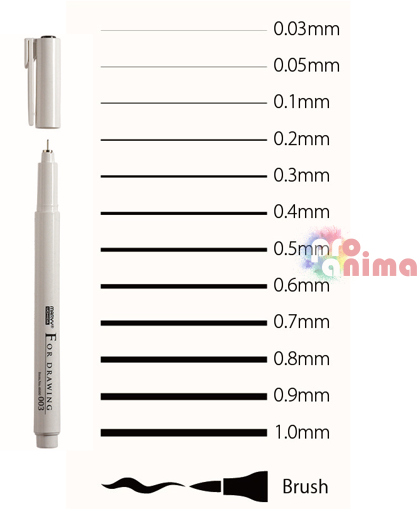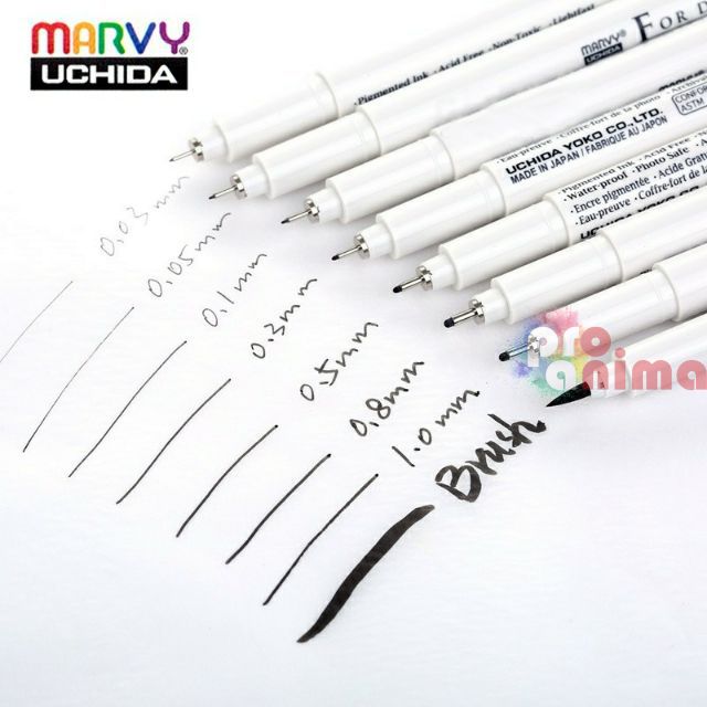 Черните тънкописци Marvy Uchida For Drawing на водна основа се предлагат в различни дебелини на писане от 0.03 mm до 1 mm или със специалният връх - четка. Тънкописците са подходящи за манга, аниме, комикс рисунки, както и други арт проекти, в които са необходими черен контур или ефекти с четка.