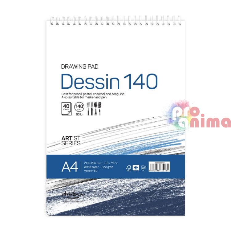 Dessin 140 drawing pad е лек и удобен скицник със спирала на късата страна, което позволява отварянето му на 360 градуса.
