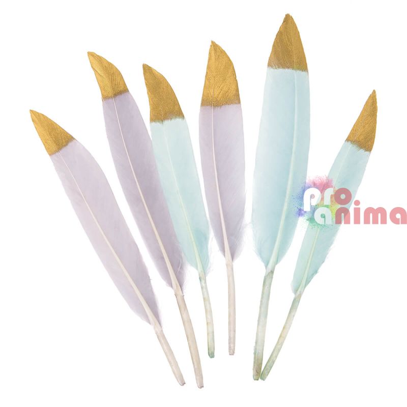Декоративните пера в сиво и мента със златист връх са прекрасно бохо допълнение към креативните ви проекти. Подходящи са за домашен декор, аранжировки на маси, флористика, както и скрапбукинг или като декоративен елемент за опаковане на подаръци.