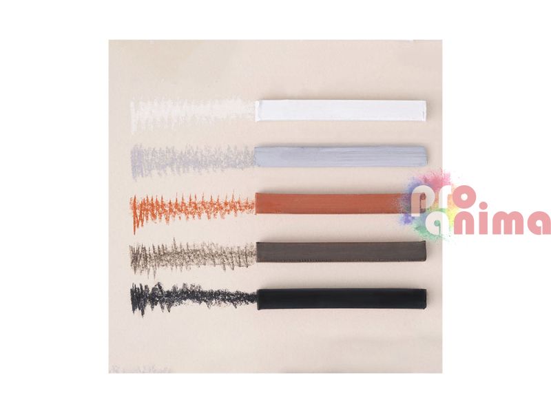 - Комплектът включва 10 бр. въглени в 5 различни цвята ( x 2 от всеки цвят): бяло, сиво, сепия, сангвин и черно и е страхотно попадение за професионални художници, амбициозни любители, дизайнери и илюстратори'