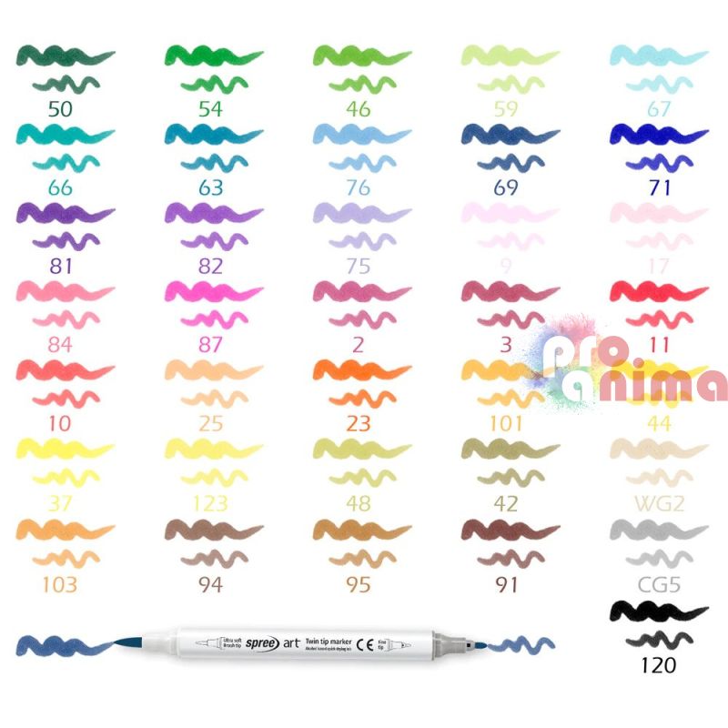 Алкохолни маркери Spree 36 цвята Двувърхи
