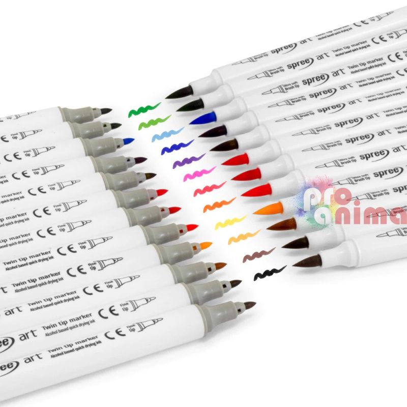 Двувърхи маркери Spree подходящи за рисуване на фини линии, за създаване на цветни преливки, за щриховане и светлосенки, за запълване на очертания.