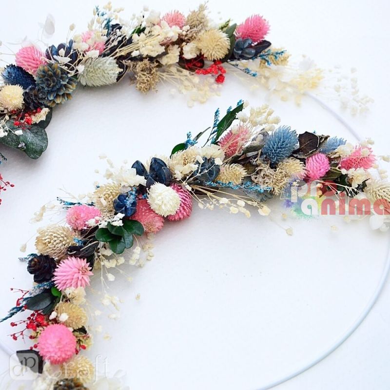 Комплект от декоративни сушени елементи - естествени листа, шишарки, екзотични плодове и растителни елементи. Естествените елементи са оцветени в морски цветове и са подходящи за различни флорални проекти, креативни идеи за домашен декор, венци, свещници и много други.