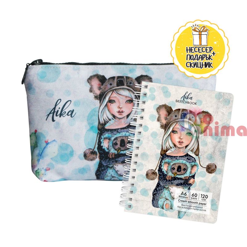 - Към несесера получавате подарък- малък скицник Aika (формат А6, 60 листи)- за бързи идеи, бележки или вдъхновяващи скици навсякъде и по всяко време.