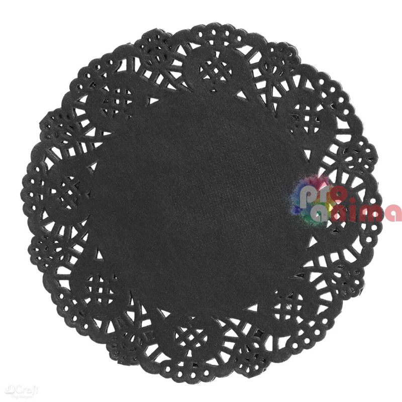 Ажурните черни салфетки (познати като doily от англ. ез.) изпълват с изящество всеки арт проект. Подходящи като допълнение към различни творчески хрумки, деликатните кръгли салфетки с елементи на дантела дават нежен завършек на вашата ръчно изработена картичка, покана или опаковка.