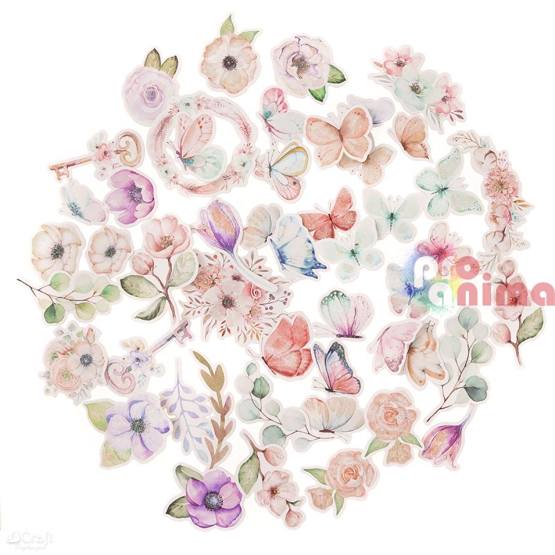 Фигурки от картон за декорация Бохо цветя и пеперуди 50 бр.