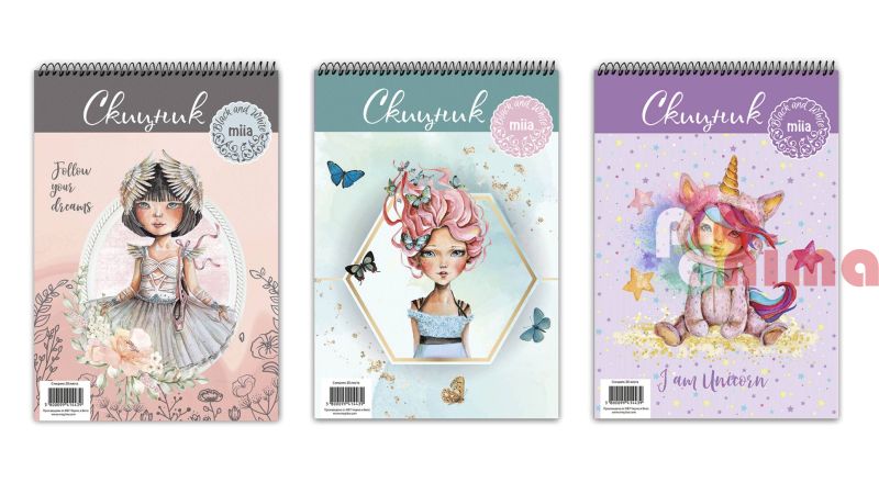 Скицникът за рисуване на Black and White от серията Miia e подходящ за часовете по изобразително изкуство в училищe или просто за творческите дейности на Вашето дете.