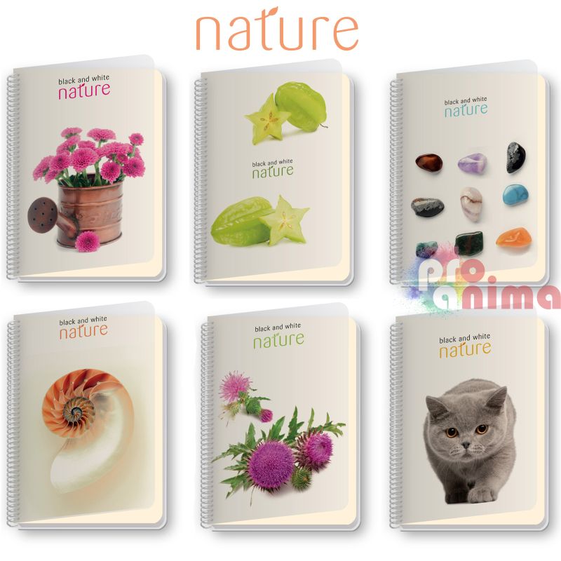 Тетрадка Black&White, A4, 180 листа, редове, спирала, PP корица, Nature