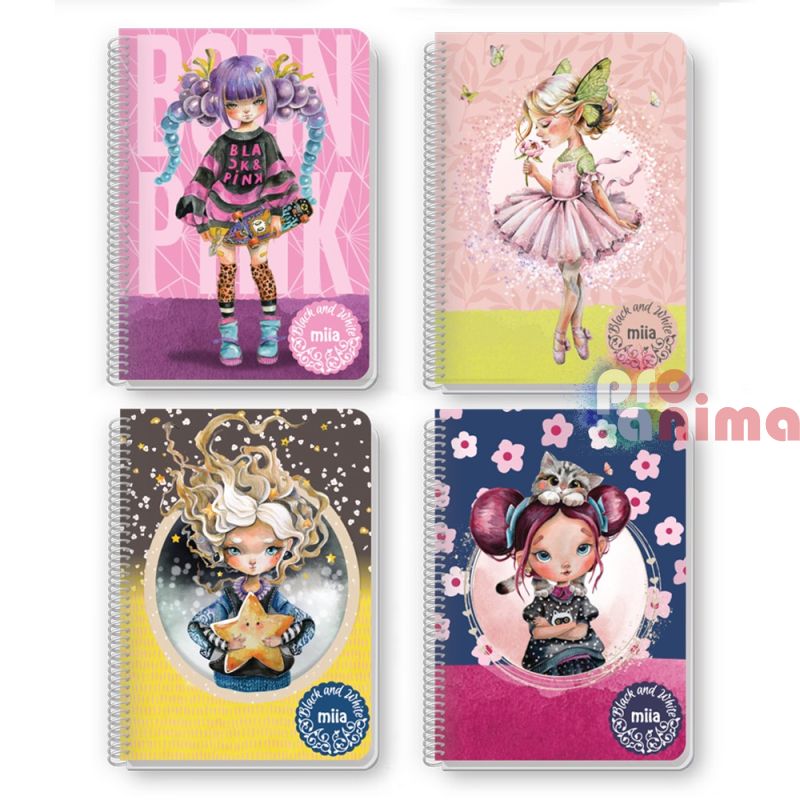 Тетрадка Black&White среден формат B5, 60 листа, редове, спирала, Miia
