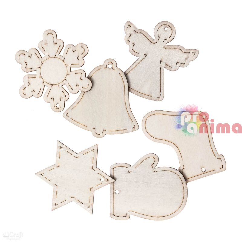 Дървени фигурки за декорация DP Craft Коледни орнаменти 6 бр.