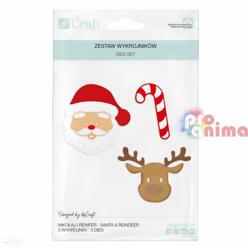 Шаблон за изрязване и релеф (щанца) DP Craft, Дядо Коледа и еленче, 3 бр.