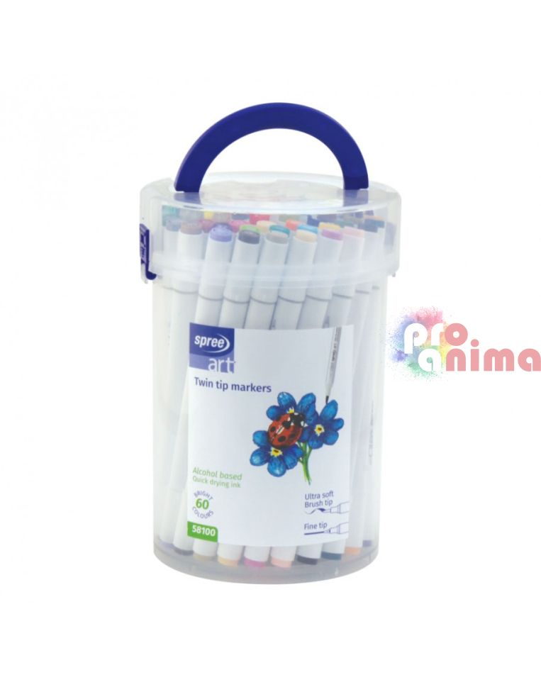 Алкохолни маркери Spree, 60 цвята, Двувърхи