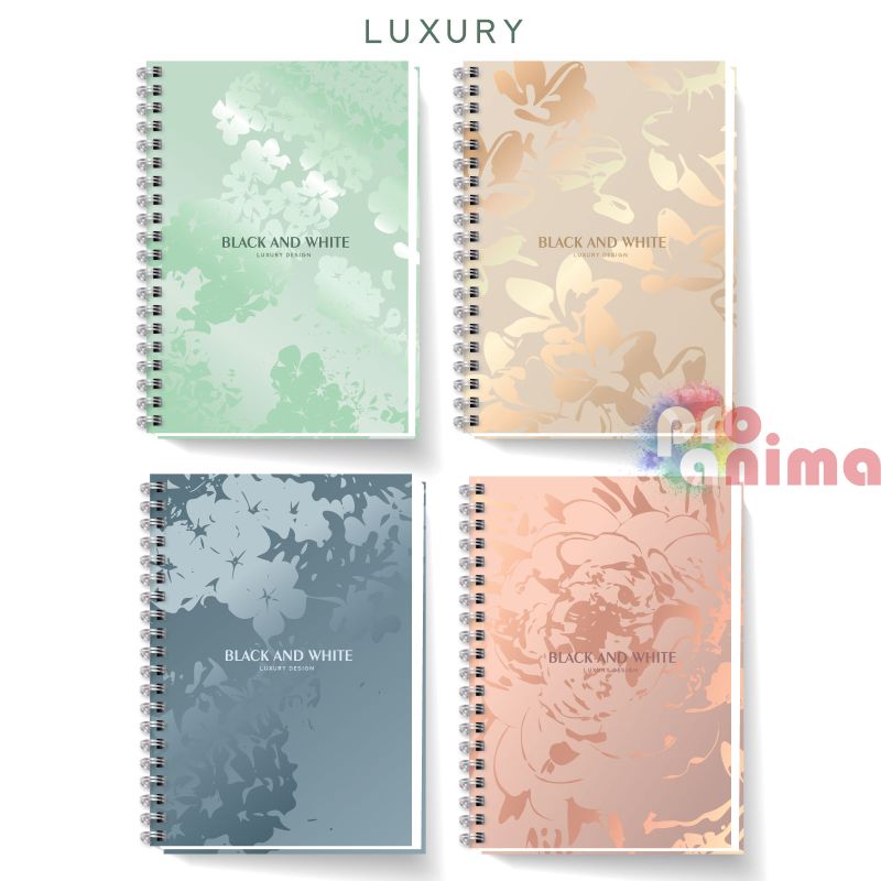 Тетрадка с твърди корици Black&White, A4, 150 листа, редове, спирала Luxury Flowers
