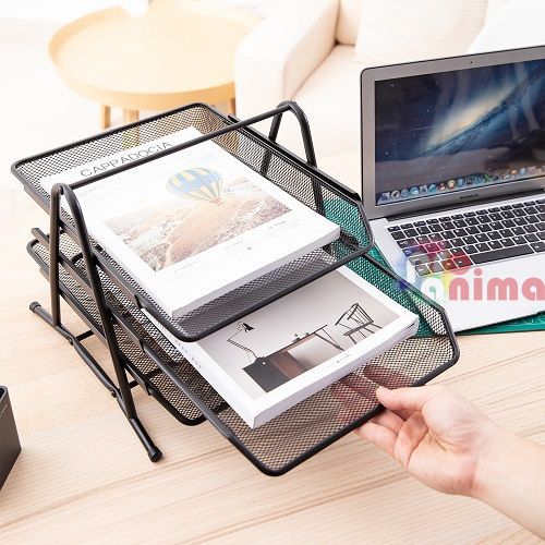 Хоризонтална поставка за бюро Deli, изработена от олекотена метална мрежа.