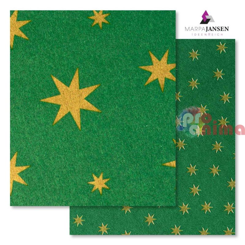 Картон варио Marpa Jansen, 50 x 70 cm, 300 g/m2, зелен със златни звезди