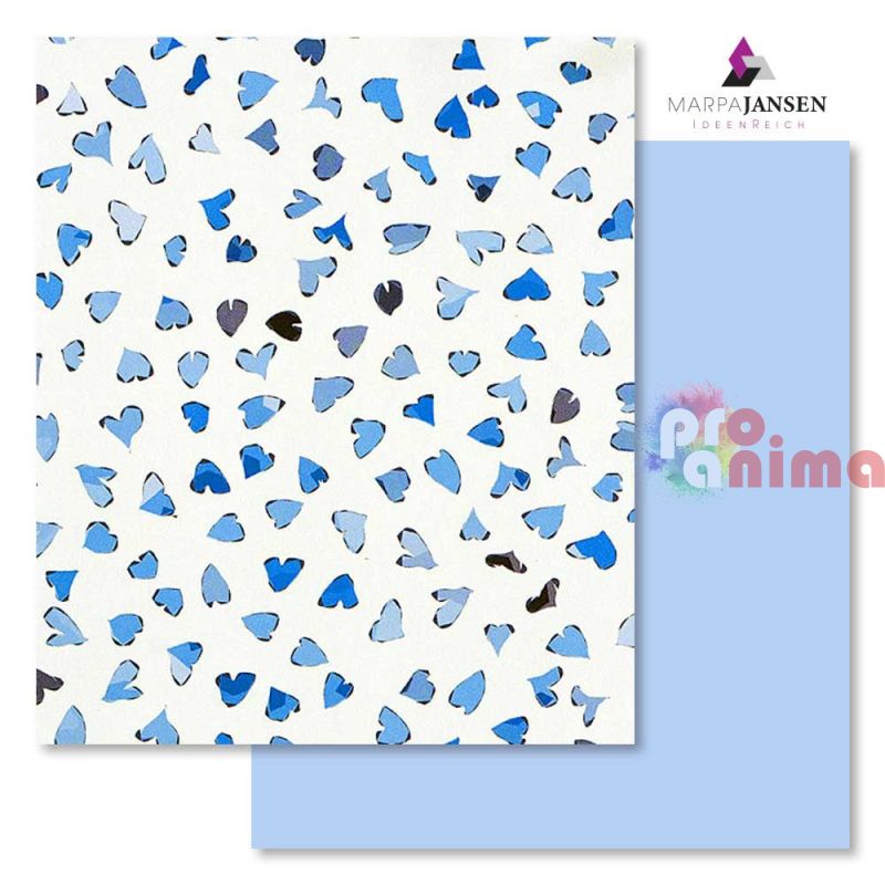 Картон варио Marpa Jansen, 50 x 70 cm, 300 g/m2, танцуващи сърца, сини